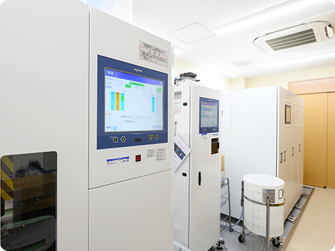 当院では水処理装置、透析液溶解装置、透析液供給装置、ベッドサイドコンソールは同一のメーカーのシステムを使用し、 (社)日本臨床工学技士会透析液清浄化ガイドラインを順守する為、臨床工学技士が徹底管理を行い、高度に清浄化された透析液を提供しています。