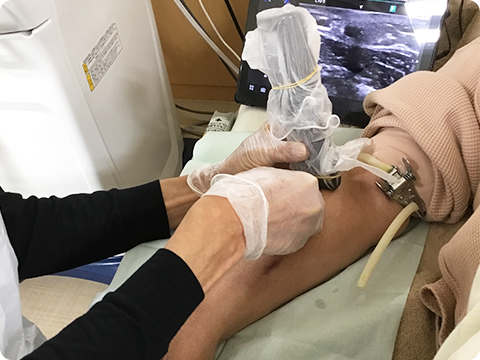 血管が細い場合や、皮膚から深いところを走行している場合、穿刺が難しいためエコーで見ながら行っています。