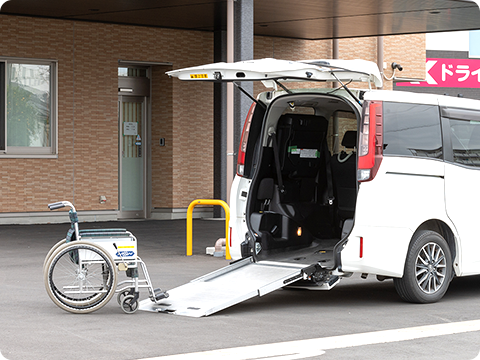 当院では透析患者様を対象とした無料送迎を行っています。福祉車両も配備しており、車椅子送迎も可能です。